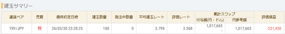 トルコリラ スワップ投資 2026月3月5週